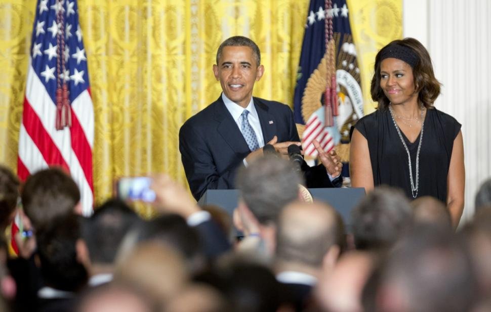 When speaking about the excellent pastry chef, Obama joked, “I don’t know what he does — whether he puts crack in them, or …” The audience responded with chuckles, however Michelle Obama quickly asserted, “no he doesn’t. … There is no crack in our pies.”